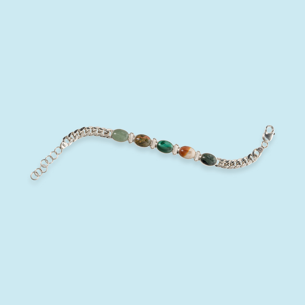 Malachite, Mookaite, Unakite Jasper, Kambaba Jasper and Aventurine set in Sterling Silver