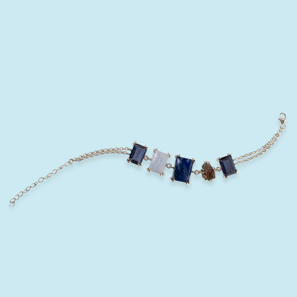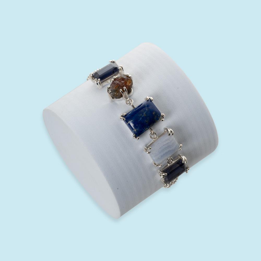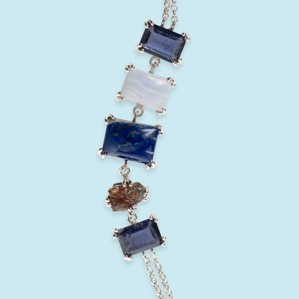 Iolite, Blue Lace Agate, Lapis Lazuli, Raw Pink Tourmaline set in Sterling Silver